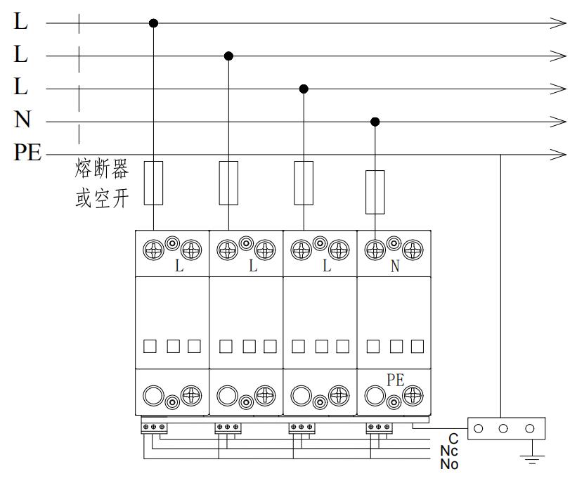 1 模塊結構防雷器接線圖如安裝接線圖所示: