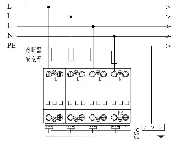 1 模塊結(jié)構(gòu)防雷器接線圖如安裝接線圖所示: