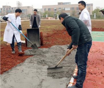 在12月24日當(dāng)天下午,為了提高籃球場(chǎng)使用的便捷性,對(duì)籃球場(chǎng)擴(kuò)建一條行人通道,由工會(huì)組織的籃球場(chǎng)修繕隊(duì)正式進(jìn)場(chǎng)了,十幾名員工,在寒風(fēng)中各司其職,有的攪拌石沙、有的添加水泥、有的運(yùn)輸攪拌好的砂漿、有的平整水泥路面,雖然室外的溫度寒風(fēng)刺骨,但他們都干得熱火朝天,頭頂冒著熱氣。