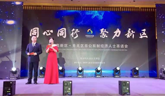 2020年1月14日下午,株洲市高新區(qū)、天元區(qū)工商業(yè)聯(lián)合會(huì)在株洲凱越大酒店隆重舉行主題為“同心同行,聚力新區(qū)”非公有制經(jīng)濟(jì)人士茶話會(huì),高新區(qū)黨工委書記、天元區(qū)委書記周建光,天元區(qū)政府區(qū)長(zhǎng)姚永告在會(huì)上分別對(duì)深入貫徹落實(shí)促進(jìn)民營(yíng)經(jīng)濟(jì)發(fā)展做了重要講話,激勵(lì)株洲高新區(qū)廣大民營(yíng)企業(yè)家踴躍投身到高質(zhì)量、快速發(fā)展的產(chǎn)業(yè)建設(shè)中來。