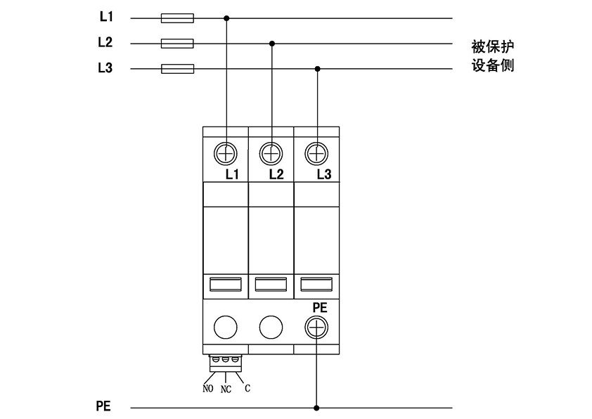 DXH06-FCS/3R40(600V)電涌保護器,適用于線電壓不超過550V電壓系統(tǒng),配電系統(tǒng)以及終端設備的電涌保護,應安裝在防雷區(qū)1(LPZ1)和防雷區(qū)2(LPZ2)的界面處。