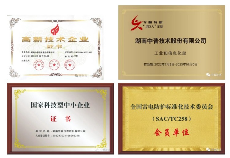 公司是國家高新技術(shù)企業(yè)、國家級“專精特新”小巨人企業(yè)(2022年7月1日-2025年6月30日)、湖南省中小企業(yè)知識產(chǎn)權(quán)貫標(biāo)單位、湖南省先進制造專板掛牌企業(yè)、湖南省商業(yè)秘密保護示范企業(yè)、株洲市科技型瞪羚企業(yè)、株洲市“中小企業(yè)100強”單位,是中國氣象學(xué)會雷電防護委員會委員單位、中國建筑學(xué)會雷電委員會會員單位、湖南省氣象學(xué)會常務(wù)理事單位。同時,公司還擁有湖南省住房和城鄉(xiāng)建設(shè)廳頒發(fā)的特種工程(特種防雷)專業(yè)承包資質(zhì)、安全生產(chǎn)許可證。