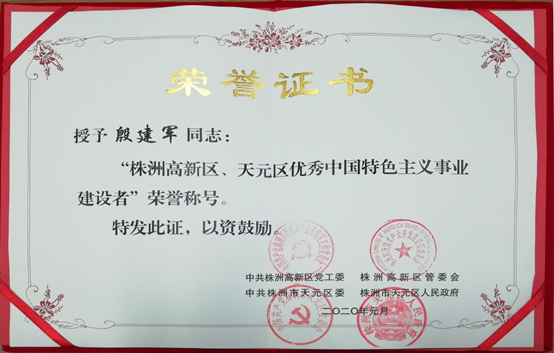 湖南中普董事長(zhǎng)殷建軍榮獲高新區(qū)、天元區(qū)“中國(guó)特色社會(huì)主義事業(yè)建設(shè)者”榮譽(yù)